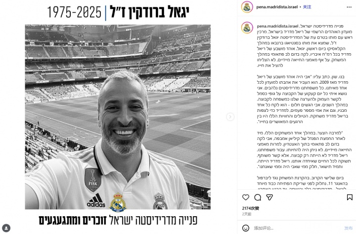 11月02日訊 據(jù)以色列皇馬球迷會(huì)確認(rèn),在上周末的西班牙國(guó)家德比中,一名以色列的皇馬球迷伊加爾-布羅德金因心臟驟停不幸去世,享年50歲。